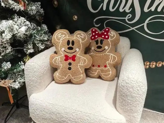 GIRL & BOY CHRISTMAS GINGERBREAD MOUSE PILLOW